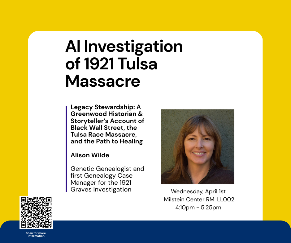 Speaker: AI Investigation of 1921 Tulsa Massacre: Alison Wilde (Investigative Genetic Genealogist and first Genealogy Case Manager for the 1921 Graves Investigation)