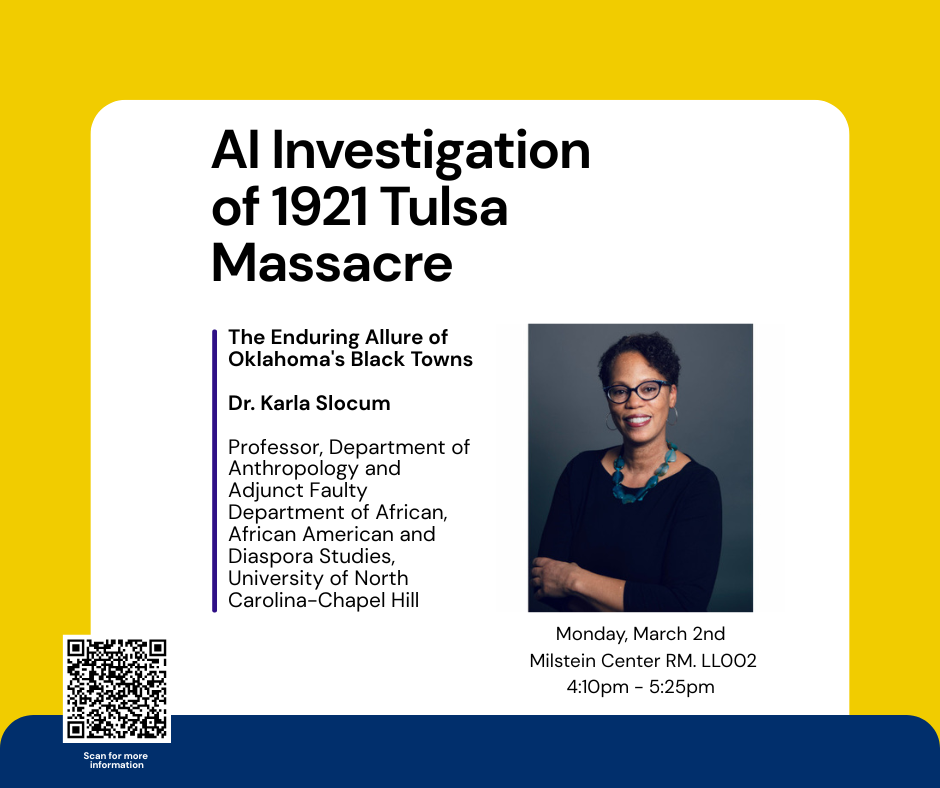 Speaker: AI Investigation of 1921 Tulsa Massacre: Dr. Karla Slocum (University of North Carolina-Chapel Hill)