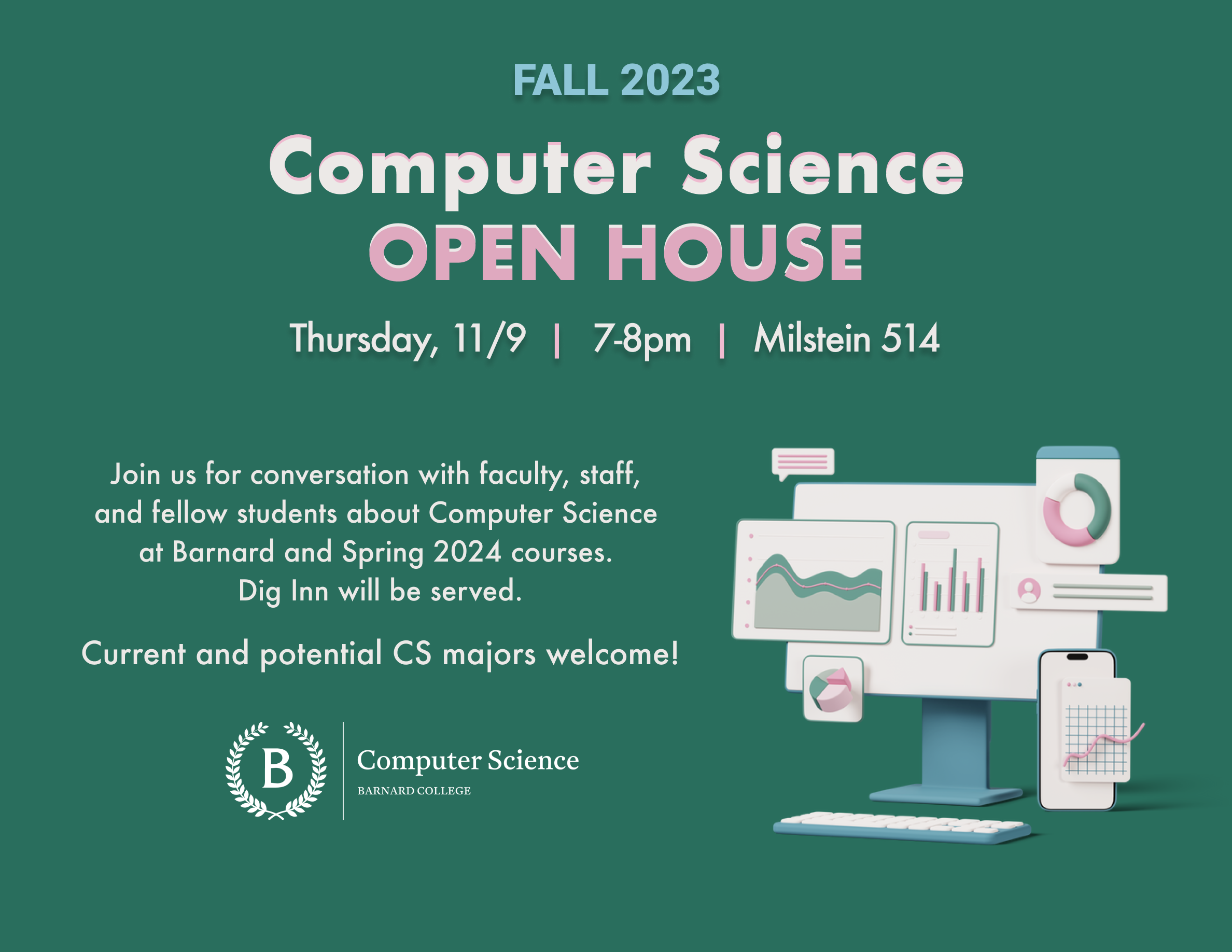 Join us for conversation with faculty, staff, and fellow students about Computer Science at Barnard and Spring 2024 courses. Dig Inn will be served.