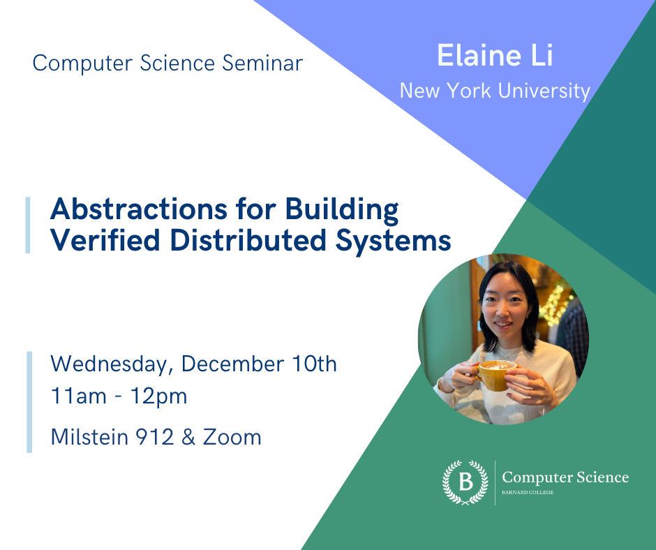 The seminar will be available for in-person and Zoom participation. To participate online, please email inquiry-cs@barnard.edu to receive the Zoom link.