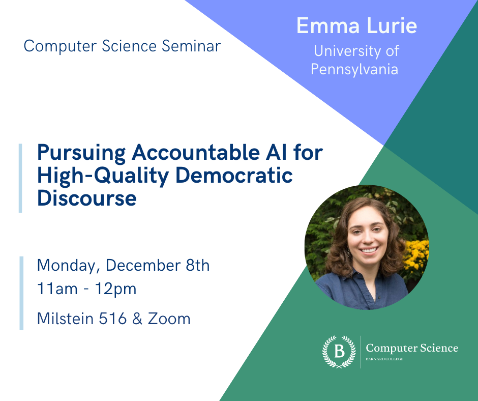 The seminar will be available for in-person and Zoom participation. To participate online, please email inquiry-cs@barnard.edu to receive the Zoom link.