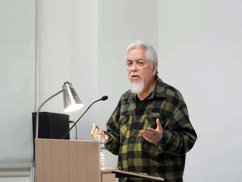 Levi Romero, New Mexico’s inaugural poet laureate, visited Professor Severin Fowles’s "Laboratory Methods in Archaeology" course as students presented the results of excavation and laboratory research into Romero’s ancestral village.